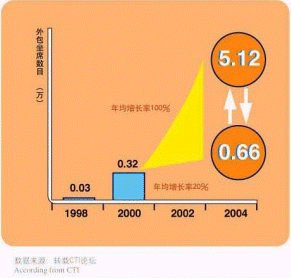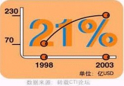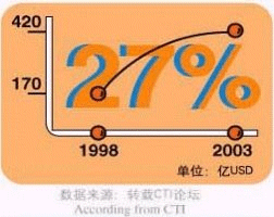 - 據(jù)CTI論壇轉(zhuǎn)引有關(guān)統(tǒng)計數(shù)字表明,全球呼叫中心外包市場1998年的產(chǎn)值為170億美元,2003年有望達到420億美元,并正以每年遞增27%的速度快增長;