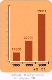 - 截至2000年底,我國總共擁有客戶服務(wù)中心座席數(shù)量7.9萬多個(不包括尋呼企業(yè)的座席數(shù)),市場總規(guī)模達到83.59億元。