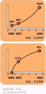 - 在CRM方面,2000年產(chǎn)值為50億美元,預(yù)計在2004年市場產(chǎn)值將達到190億美元。
