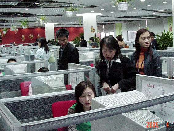 。。2005年4月12日,2005中國國際呼叫中心與客戶關(guān)系管理大會(huì)組織了呼叫中心現(xiàn)場(chǎng)參觀,第一參觀路線為世紀(jì)新元和盛大網(wǎng)絡(luò),第二參觀路線為招商銀行信用卡中心(CCCS認(rèn)證五星級(jí)呼叫中心)和平安財(cái)險(xiǎn),以下是相關(guān)圖片報(bào)道: