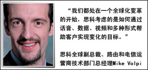 所有的運(yùn)營(yíng)商都處在一個(gè)全球化變革的開(kāi)始,思科的機(jī)會(huì)是通過(guò)話音、數(shù)據(jù)、視頻的多種形式幫助客戶實(shí)現(xiàn)變化的目標(biāo)。