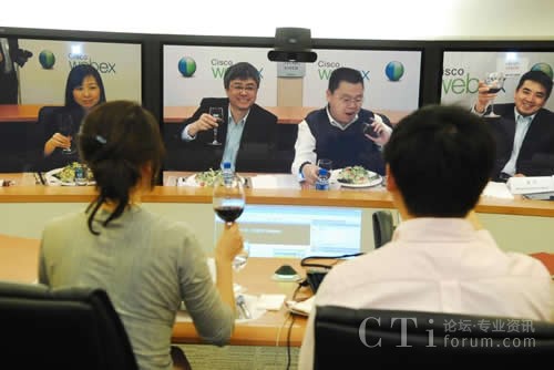 思科中國(guó)首席技術(shù)官梁永健、思科中國(guó)區(qū)副總裁華東區(qū)總經(jīng)理陳葵、思科WebEx研發(fā)及協(xié)作軟件全球副總裁袁征今天通過(guò)思科的網(wǎng)絡(luò)會(huì)議技術(shù)和中國(guó)知名博主在北京、上海和舊金山三地共進(jìn)午餐,來(lái)賓共同舉杯紀(jì)念這一歷史性瞬間。