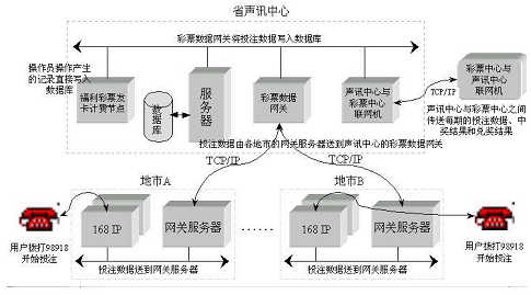 福利彩票業(yè)務一般是由用戶直接在彩票投注站點購買彩票進行投注,由于投注站點數量較少,在時間、空間上限制著彩票投注業(yè)務的進一步發(fā)展。所謂福利彩票電話投注業(yè)務,即用戶通過電話進入聲訊系統(tǒng),按照系統(tǒng)提示音進行相應的按鍵操作,從而完成福利彩票投注業(yè)務。福利彩票電話投注系統(tǒng)建成后將為用戶提供方便快捷的彩票投注方式,通過電信網將福利彩票的業(yè)務延伸到千家萬戶。