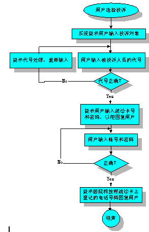 投訴可以自動(dòng)完成,提示用戶輸入投訴的科室和醫(yī)院服務(wù)人員的代號(hào)。