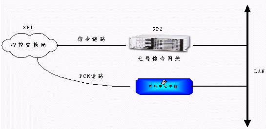 程控端局傳輸過(guò)來(lái)的信令和話路通過(guò)同一條PCM線傳輸。七號(hào)信令網(wǎng)關(guān)處理多時(shí)隙流的PCM接入,并將信令和話路分開(kāi),同時(shí)將話路轉(zhuǎn)出到呼叫中心平臺(tái)中。這種方式充分利用了物理資源,適合于信令鏈路比較簡(jiǎn)單的系統(tǒng),這種方式使結(jié)構(gòu)更顯緊湊,減少系統(tǒng)所需資源,通常用于單鏈路的結(jié)構(gòu)。