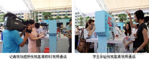 這次在廣州大學城開展的發(fā)布會,吸引了很多在校大學生的參加,下圖是記者和學生現場體驗通過悅視高清視頻通話玩即時猜拳游戲,傳輸的所有畫面非常清晰流暢,悅視產品的優(yōu)質體驗讓人享受無線高質量流媒體服務的同時深刻感受到TD-LTE高帶寬、低時延的優(yōu)勢。
