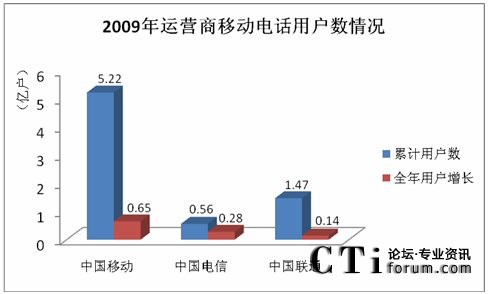 截至2009年12月31日,國內(nèi)移動電話用戶累計達(dá)到74738.4萬戶,中國移動的用戶總數(shù)已達(dá)到5.22億戶,累計客戶凈增長6503.3萬戶,在三大運(yùn)營商中,中國移動的用戶保有量和每月新增用戶數(shù)份額仍然最大。