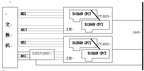 業(yè)務(wù)交換點(SSP)功能可由東進(jìn)公司高性能的網(wǎng)關(guān)DSIU7200U和數(shù)字卡D1280N CompactPCI配合完成。系統(tǒng)配置方式靈活,性能穩(wěn)定,升級擴(kuò)容方便,易于開發(fā),為客戶提供高性價比解決方案。