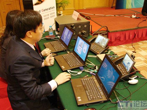 貫穿此次活動的一大重頭——3G環(huán)境下視頻業(yè)務(wù)現(xiàn)場演示,被認(rèn)為是產(chǎn)業(yè)融合創(chuàng)新從理論思路到實(shí)踐的跨越。在本次活動中,現(xiàn)場展示了折扣搜尋店、移動保安和電話QQ面對面等幾項(xiàng)基于視頻特性的創(chuàng)新應(yīng)用,分別演示了IVVR、視頻監(jiān)控和視頻會議這3個功能。演示業(yè)務(wù)顯示出Keygoe多媒體交換機(jī)的視頻特性,以及在3G增值業(yè)務(wù)中的潛在實(shí)力。