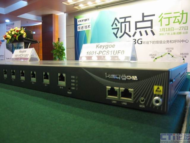 據(jù)了解,此次演示是基于以東進(jìn)Keygoe多媒體交換機(jī)為主體的平臺,東進(jìn)Keygoe多媒體交換機(jī)系列產(chǎn)品提供融合、開放、靈活和高性能的多業(yè)務(wù)承載平臺,可與3G網(wǎng)絡(luò)完全融合。此外在現(xiàn)場,Keygoe