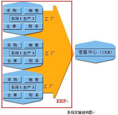 比如在家電行業(yè),服務自動化(任務派發(fā),備件管理,費用管理等),涉及到人,財,物的事務處理等顯得尤其急迫。家電企業(yè)下面一般都有各種生產(chǎn)不同產(chǎn)品的工廠,每個工廠都是獨立核算的生產(chǎn)單位,它下屬了主管生產(chǎn)的車間,負責原材料來源的采購部門,存儲原材料的倉庫,獨立核算的財務部門,負責銷售該工廠產(chǎn)品的銷售部門等。通過在這些工廠內(nèi)部實施ERP系統(tǒng),可以將家電企業(yè)的生產(chǎn),供銷,財務,配件等部門的工作流程優(yōu)化整合起來,而客服中心是獨立核算的部門,它負責全部產(chǎn)品的維修,投訴,客戶關(guān)懷,市場調(diào)查等,可以在客服中心實施CRM系統(tǒng)來實現(xiàn)服務自動化以及客戶關(guān)系管理的功能。
