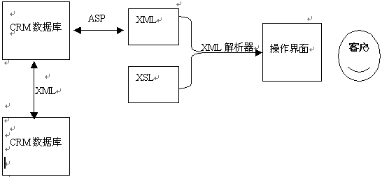 包括客戶資料,銷售報表等相關(guān)的客服信息都存儲在數(shù)據(jù)庫中,通過ASP應(yīng)用程序取出需要的數(shù)據(jù)生成符合條件的XML文檔,再通過安裝在服務(wù)器端的XML解析器按照預(yù)先設(shè)定的排版樣式XSL解析XML文檔,最后生成符合條件的HTML格式的CRM操作界面呈現(xiàn)在客戶面前?蛻魯(shù)據(jù)可能來自不同的數(shù)據(jù)庫,并且都有各自不同的復(fù)雜格式。但客戶與這些數(shù)據(jù)庫間只通過一種標(biāo)準(zhǔn)語言進(jìn)行交互,那就是XML。由于XML的自定義性及可擴展性,它足以表達(dá)各種類型的數(shù)據(jù)?蛻羰盏綌(shù)據(jù)后可以進(jìn)行處理,也可以在不同數(shù)據(jù)庫間進(jìn)行傳遞。