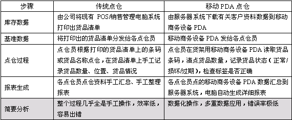 以下對傳統(tǒng)盤點(diǎn)和移動(dòng)PDA盤點(diǎn)的比較: