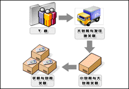 3. 商品的外包裝生成一個(gè)同所有內(nèi)包裝信息碼關(guān)聯(lián)的管理碼建立大小包裝間的關(guān)聯(lián)關(guān)系