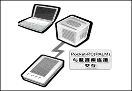 市場和營銷人員(促銷員)回到公司后將PDA和服務(wù)器端系統(tǒng)相聯(lián),實(shí)現(xiàn)前端的移動(dòng)應(yīng)用系統(tǒng)和公司內(nèi)部系統(tǒng)的數(shù)據(jù)同步功能。