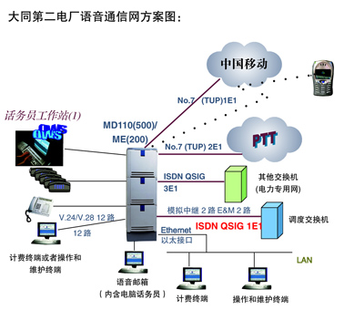 大同第二發(fā)電廠二期擴(kuò)建需要建設(shè)一個(gè)新的語音交換系統(tǒng),既用于電廠內(nèi)行政通信,又可以成為廠內(nèi)和公網(wǎng)語音通信匯接中心。