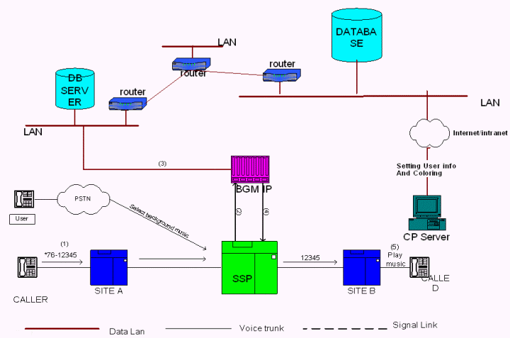 2、根據(jù)用戶撥打?qū)Ψ教?hào)碼的不同選擇不同的SSP,如果前綴有"*76",就會(huì)進(jìn)入BGM IP服務(wù)器,該通話會(huì)有用戶所定義的背景音樂(lè),如果前綴沒(méi)有"*76",