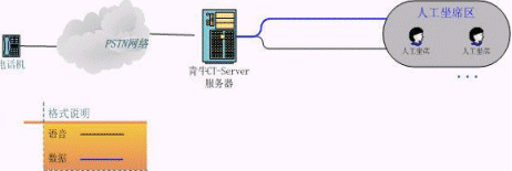 根據(jù)實(shí)際呼入量和人員規(guī)模,客服中心一般只能夠使用模擬電話接入加上語(yǔ)音板卡的方式。利用青牛軟件提供的CT-Server方案就可以滿足這一需求,本方案不僅提供了小容量的PBX功能,而且提供了CTI控制和自動(dòng)語(yǔ)音處理功能;贑T-Server可以方便的開發(fā)出適合自己業(yè)務(wù)的坐席應(yīng)用軟件和IVR流程,開發(fā)人員只需要了解簡(jiǎn)單的呼叫流程和業(yè)務(wù)流程,無(wú)需熟悉語(yǔ)音板卡的硬件開發(fā)接口,也不需要關(guān)心系統(tǒng)采用的是NMS的語(yǔ)音板卡還是Dialogic的語(yǔ)音板卡。