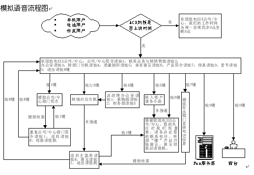 - 本系統(tǒng)的服務(wù)內(nèi)容包括:企業(yè)與政府部門簡(jiǎn)介,產(chǎn)品與服務(wù)簡(jiǎn)介,人工服務(wù),轉(zhuǎn)部門分機(jī),呼叫轉(zhuǎn)移,部門直線電話號(hào)碼查詢,質(zhì)量與服務(wù)投訴,錄音留言等。