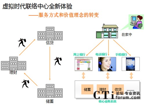 所以,英立訊提出的 “感•動(dòng)中心”實(shí)際代表了未來(lái)聯(lián)絡(luò)中心的發(fā)展方向,那就是:聯(lián)絡(luò)中心的全媒體溝通方式代表了新一代“人機(jī)交互”的通訊模式,將逐步替代“人人交互”的傳統(tǒng)柜員模式。以金融行業(yè)為例,融合電話銀行和網(wǎng)上銀行的電子銀行業(yè)務(wù),正在替代越來(lái)越多的柜臺(tái)業(yè)務(wù),80%以上的柜臺(tái)業(yè)務(wù)通過(guò)電話或網(wǎng)絡(luò)都能辦妥,同時(shí)銀行可以通過(guò)電話外呼方式進(jìn)行產(chǎn)品銷售的規(guī)模連年成倍增長(zhǎng),電話渠道服務(wù)正成為商業(yè)銀行業(yè)績(jī)上升的新增長(zhǎng)點(diǎn)。