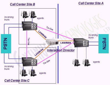 Interaction Director的功能比Interaction Multi-Site還要強(qiáng)大的多,不但支持Interaction Multi-Site的具有的功能外,還支持更大規(guī)模的分布式系統(tǒng)、呼叫前和呼叫后路由(呼叫前路由采用SS7信令,需要電信運(yùn)營商的支持)以及真正的網(wǎng)絡(luò)排隊(duì)機(jī)(Network ACD)等。Interaction Director通常安裝在一臺單獨(dú)的服務(wù)器上,用來決定最佳分布點(diǎn)的系統(tǒng)處理來電。Interaction Director可以實(shí)時(shí)監(jiān)控各個(gè)分布點(diǎn)的系統(tǒng)負(fù)載,坐席、技能、隊(duì)列等狀態(tài)。采用Interaction Director可以方便的實(shí)現(xiàn)分布式呼叫中心系統(tǒng)的負(fù)載均衡和災(zāi)難備份。舉例來說,在周末話務(wù)量較小的情況下,為節(jié)省資源和運(yùn)營成本,可以將北京中心的所有來電路由至上海中心處理;又如,上海中心發(fā)生故障,可以將所有來電路由至北京中心處理。