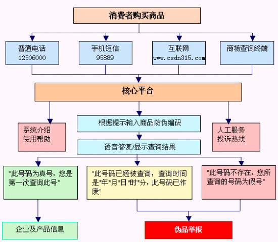 在國家計委和國務(wù)院信息辦的直接領(lǐng)導(dǎo)下,以及在質(zhì)檢、工商、醫(yī)藥等職能部門的配合下,國家信息中心正式啟動國家級防偽工程 -- 數(shù)碼防偽公共服務(wù)系統(tǒng)建設(shè)。該系統(tǒng)綜合利用了當(dāng)前最先進的技術(shù),集CTI技術(shù)、語音技術(shù)、網(wǎng)絡(luò)通信技術(shù)、計算機加密技術(shù)、以及大型數(shù)據(jù)庫技術(shù)于一體,服務(wù)于產(chǎn)品防偽和打假,支持企業(yè)采用現(xiàn)代信息技術(shù)開展防偽工作,提高防偽效能,并為廣大消費者提供安全和質(zhì)量的保障。