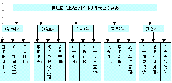 奧迪堅(jiān)報(bào)業(yè)熱線(xiàn)綜合服務(wù)系統(tǒng)可以受理電話(huà)廣告預(yù)定業(yè)務(wù),以及廣告版面撤銷(xiāo)等服務(wù)。