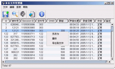 - 錄音重現(xiàn):可以把每個呼入電話(需電話局或交換機(jī)提供發(fā)號功能)或呼出電話的重要資料,清楚地索引出來,比如日期,時間,對話時間,來/去電號碼等都記錄下來.操作者可選擇不同組合的索引方式或按鼠標(biāo),便可在十秒內(nèi)重播對話內(nèi)容。
