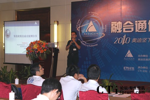 CTI論壇(ctiforum)9月10日消息(記者 楊毅):2010年9月9日奧迪堅在廣州市嘉鴻華美達廣場酒店舉辦的“下一代融合通信平臺華南研討會” 圓滿落下帷幕。本次會議以 “融合通信” 為主題,將最新的由“IPT、IPCC、UC和Mobility”四個部分組成的融合通信技術完美呈現(xiàn)在嘉賓眼前,吸引了業(yè)界眾多知名廠商和媒體,并得到了奧迪堅在各個行業(yè)的新老客戶的積極響應和參與。通過奧迪堅的精彩主題演講、現(xiàn)場的情景秀表演和眾多案例分享等多種形式,與合作伙伴及嘉賓共同探討融合通信技術該如何發(fā)展、解讀渠道新政策、同時更加深入了解奧迪堅產(chǎn)品,提高合作伙伴在市場上的競爭力。CTI論壇(www.kpskgd.com)獨家承辦此次會議,并進行全程報道。