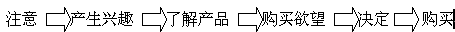 另外在其它的銷售渠道上,如電視、廣播、報紙等,他們對市場目標(biāo)的準(zhǔn)確度都是不高的,因為這樣的原因,也無法對目標(biāo)市場作掌控和測試,雖然他們可以很快速的擴(kuò)展市場,對市場產(chǎn)生很大的響應(yīng)力,但如果沒有很好的市場營銷與品牌整體性和長期性規(guī)劃,也很快的會變成曇花一現(xiàn),歷史中的記憶,這些渠道的成本也是最高的,所以不是所有的企業(yè)都能一體適用的,尤其是中小型企業(yè)是無法長期負(fù)擔(dān)的。誠如在之前的文章里面分析所講的,最好的銷售效果是一拉一推的力量,用多媒體感官性及理性的獲取消費者的注意力,再配合快速效能的主動銷售,往往能將營銷的效果提升到最高的層面。將到這兒,就不得不順帶提到消費者購買的行為模式。我們將消費者對購買的心理和行為分為幾個階段:
