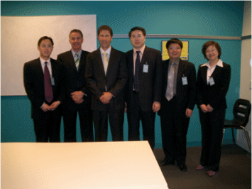 從左至右分別為華夏銀行工程師雷宏、GENESYS主管、澳新銀行客戶服務(wù)中心項(xiàng)目管理與運(yùn)營經(jīng)理Allan Hopson,華夏銀行網(wǎng)絡(luò)銀行部總經(jīng)理黎清、華夏銀行個(gè)人業(yè)務(wù)部副總經(jīng)理宋曉波、華夏銀行客戶服務(wù)中心經(jīng)理彭凌