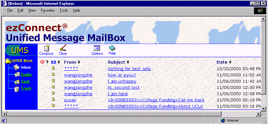 ezConnect的統(tǒng)一信息處理系統(tǒng)可以在同一個(gè)界面處理客戶交互請(qǐng)求,例如文字信息、網(wǎng)頁表格、電子郵件、語音郵件和傳真。從同一個(gè)UMS信箱,呼叫中心座席可以: