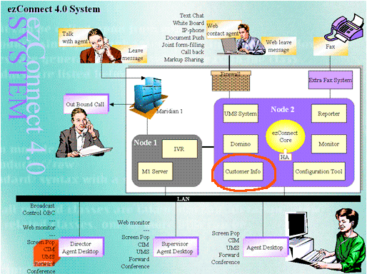 作為一種成功的企業(yè)應(yīng)用案例,這種方案已經(jīng)成功的應(yīng)用在我們的企業(yè)級多媒體呼叫中心 ezConnect產(chǎn)品中,該產(chǎn)品能同時(shí)處理傳統(tǒng)呼叫中心的電話請求和以互聯(lián)網(wǎng)為中心的Web 請求,同時(shí)配備多種實(shí)時(shí)交流手段,軟電話功能和基于web 的文本交談,圖片共享,白板,文檔推送,IP電話,UMS, SMS 和WAP 等為客戶提供很方便且實(shí)用的功能, 并且提供基于特定技能路由的分配器,同時(shí)處理電話和Web請求。而且同時(shí)支持多種語言并提供統(tǒng)一的配置工具。當(dāng)該請求到達(dá)座席時(shí),在座席的桌面上彈出客戶的基本信息和交易信息,座席可以根據(jù)這些信息給客戶提供更加個(gè)性化的服務(wù)。本文就針對該產(chǎn)品的實(shí)際開發(fā)和實(shí)現(xiàn), 以及工作中的一些感想來與大家共同探討客戶信息管理的應(yīng)用和前景。