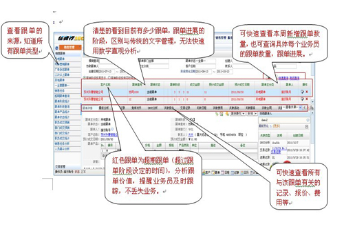 2、通過軟件對跟單的業(yè)務進展記錄固化,清晰掌握該跟單由誰創(chuàng)建、誰去談單、報價有無競爭對手、有無難點等進展一覽無余,避免了傳統(tǒng)的電話、面對面溝通。
