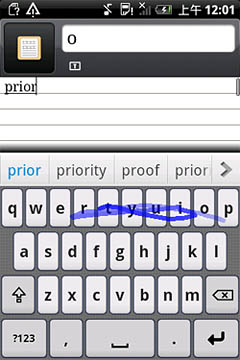 這里我們選取全鍵盤布局方案來測試本次的滑行輸入。首先是單行輸入,我們通過快速的手指滑行分別輸入“prior” “were”,單詞被準(zhǔn)確識別。
