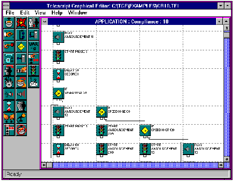 Enterprise 2002 圖形化腳本編輯器軟件工具可供Enterprise 2002的用戶使用。該圖形化編輯器是一種基于圖標的呼叫流程管理工具,可用來查看和編輯通信腳本文件中所包含的呼叫流程。該工具為用戶提供了一個圖形化用戶界面,可使其通過在Windows應用中點擊和拖拽鼠標來創(chuàng)建和修改腳本文件。在操作過程中,用戶可隨時以輸入關鍵詞方式獲得相應的幫助信息。