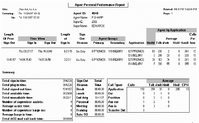 此上是一個坐席活動報告的樣本,是通過TRR服務器可提供的150多種標準管理報告的一種。
