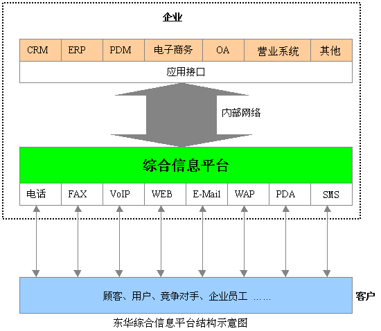 東華集團(tuán)綜合信息平臺不但能完善服務(wù)質(zhì)量、提高客戶滿意度;可以降低服務(wù)及業(yè)務(wù)處理運營成本,提高勞動生產(chǎn)率,充分利用資源;更能適應(yīng)業(yè)務(wù)的迅猛發(fā)展,擴(kuò)展業(yè)務(wù)處理能力,增加業(yè)務(wù)收入,是企業(yè)進(jìn)行客戶關(guān)系管理的完全解決方案,是企業(yè)構(gòu)建CRM的基礎(chǔ)。