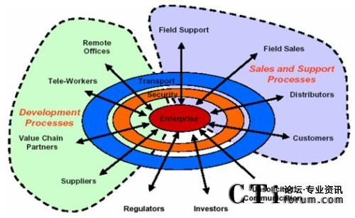 不同公司,生辰八字不同,發(fā)家史不同,決定了企業(yè)利益戰(zhàn)略點的不同,對統(tǒng)一通信的市場切入點和定位目標就存在一些差異。軟件商采用以桌面軟件為基礎,從上往下滲透的策略,設備商采用從基礎架構出發(fā),從下往上突破的策略,但對統(tǒng)一通信的基本認識可統(tǒng)歸為:以用戶為中心,實現(xiàn)跨時空的無限溝通。這里拋棄了網(wǎng)絡、終端、融合、平臺等技術層面的東西,而是完全從業(yè)務層面迎合了企業(yè)客戶的基本需求,企業(yè)聽到了自然心動!耙赂幌刃蘼贰,企業(yè)要發(fā)展,就必須先修好這條通信大道。從中,我們也可看出統(tǒng)一通信不是一種技術,也不是一項應用,而是一種需求、一種企業(yè)對網(wǎng)絡、通信技術成熟發(fā)展之后的需求滿足的期望。此外,通過對這些主要廠家的UC解決方案進行分析,也可以發(fā)現(xiàn),無論大家的口號怎樣,PPT里的網(wǎng)絡架構如何多變,卻一致地采用SIP協(xié)議進行會話控制,用IP協(xié)議進行數(shù)據(jù)傳輸,通過應用服務器(或類似網(wǎng)元)提供各種統(tǒng)一通信功能。