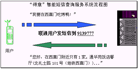"得意"智能短信系統(tǒng)是在現(xiàn)有的數(shù)據(jù)通信和短信服務(wù)的技術(shù)平臺(tái)上,加入基于中文語(yǔ)言理解技術(shù)的"得意"口語(yǔ)對(duì)話系統(tǒng),從而能夠讓用戶在手機(jī)上以自然語(yǔ)言的形式享受指定領(lǐng)域的智能短信服務(wù)。智能短信系統(tǒng)對(duì)短信文本進(jìn)行自動(dòng)分析和理解,再?gòu)闹R(shí)庫(kù)中提取用戶所需的信息,然后自動(dòng)產(chǎn)生智能應(yīng)答語(yǔ)句,并以短信文本的形式發(fā)回用戶。由于"得意"口語(yǔ)對(duì)話系統(tǒng)具有上下文相關(guān)理解和人機(jī)混合主導(dǎo)等強(qiáng)大功能,在規(guī)定的領(lǐng)域內(nèi),用戶可通過一個(gè)或者多個(gè)短信構(gòu)成一組對(duì)話,完成復(fù)雜的信息查詢或者其他互動(dòng)服務(wù)。