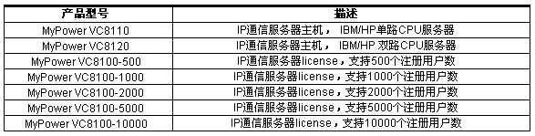 MyPower VC8100 IP通信服務(wù)器負(fù)責(zé)網(wǎng)關(guān)、IP電話(huà)機(jī)以及軟電話(huà)的注冊(cè)、號(hào)碼路由、增值業(yè)務(wù)提供等功能,基于MyPower VC8100的IP通信解決方案可以給用戶(hù)提供:IP語(yǔ)音通信、IP視頻通信、IP傳真通信;可以提供語(yǔ)音郵件、自動(dòng)總機(jī)、號(hào)碼攜帶、按名字呼叫、搜尋組等增值應(yīng)用;可以提供呼叫轉(zhuǎn)接、轉(zhuǎn)移、停泊、代答、保持等補(bǔ)充語(yǔ)音業(yè)務(wù)。