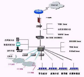 BRAS的驗證才能上網(wǎng)。校園網(wǎng)系統(tǒng)應(yīng)能覆蓋整個校園,并連接所有的學(xué)院和辦公區(qū),為大學(xué)開展現(xiàn)代化的經(jīng)營管理和辦公教學(xué)提供一個具有開放式體系結(jié)構(gòu)的計算機網(wǎng)絡(luò)系統(tǒng),具有高度的可靠性和可擴(kuò)展能力。對校園網(wǎng)內(nèi)的每一用戶(老師或?qū)W生)、閱覽室、圖書館、多媒體教室等都能夠進(jìn)行單獨的管理、計費(時長、時段、包月、流量)、驗證、授權(quán)(瀏覽、下載、收發(fā)信件、網(wǎng)站屏蔽)、共享、帶寬分配。尤其對學(xué)生和老師區(qū)別的管理非常獨特。