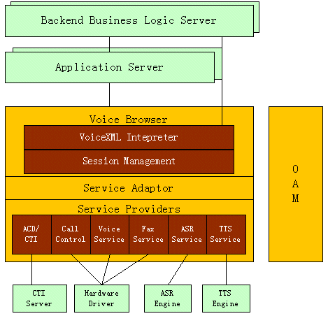 o 功能豐富:支持VoiceXML 2.0的全部現(xiàn)有功能,支持主流PBX、CTI中間件、語音呼入\出、傳真等功能,支持語音識別(ASR)和語音合成技術(shù)(TTS)。