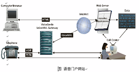 VoiceSoft先進的技術(shù)可以將傳統(tǒng)的電力公司的網(wǎng)站改造為語音門戶網(wǎng)站,用戶既可以通過傳統(tǒng)的internet方式瀏覽電力公司網(wǎng)站,也可以通過電話撥入的方式獲得網(wǎng)站上的信息,使用網(wǎng)站上的功能,利用ASP的技術(shù),實現(xiàn)語音服務(wù)數(shù)據(jù)和網(wǎng)上瀏覽數(shù)據(jù)同步更新。