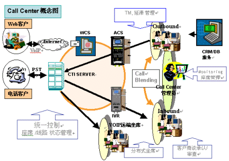 支持多種接入和呼出方式,支持網絡坐席及多媒體應用。功能包括:普通電話接入,IP電話,傳真,Web接入,網絡聊天TextChat、Email、網際協(xié)作、網頁同步、視頻交互、文件傳輸、網絡白板……