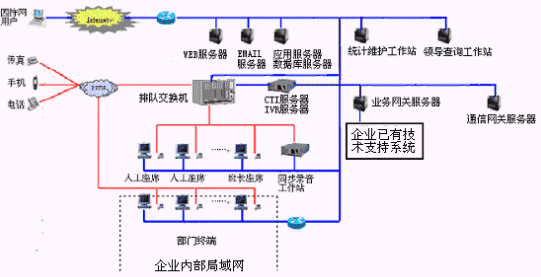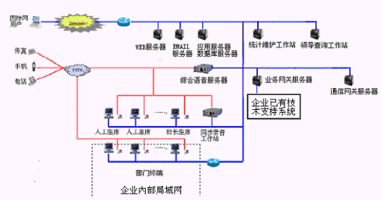 網(wǎng)上服務系統(tǒng):與INTENET結合,接受來自網(wǎng)上的呼叫請求,提高服務和營銷的質(zhì)量和效率。