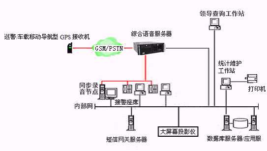 博宇科技110無線報警定位調度系統(tǒng)指揮調度中心的物理結構由帶語音板卡的高性能工控機、CTI服務器、接警座席、統(tǒng)計維護管理工作站、數(shù)據(jù)庫服務器/應用服務器、短消息網關服務器、同步數(shù)字錄音工作站、網絡系統(tǒng)和大屏幕投影儀等以及所開發(fā)的有關應用軟件構成。