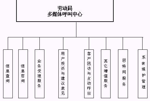 本系統(tǒng)具有自動語音服務、人工坐席服務、信息咨詢、信息查詢、客戶投訴建議、客戶回訪與信息調(diào)查、因特網(wǎng)服務、管理人員對語音記錄的查詢等功能,并且結(jié)合圖形化的管理、監(jiān)控界面,使得客戶隨時隨地可以利用身邊的各種通訊工具獲得勞動局的方便快捷的服務。