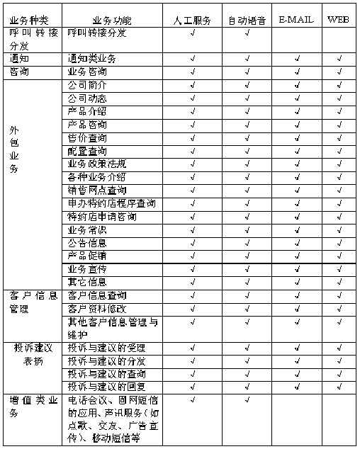 F、通知類業(yè)務(wù):對(duì)某些特定的對(duì)象通過自動(dòng)呼出或人工呼出進(jìn)行通知,實(shí)現(xiàn)政策法規(guī)、專題的通知,方式可以是電話、傳真、eMail、短消息、網(wǎng)站等;