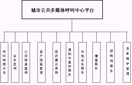 城市公共多媒體呼叫中心平臺(tái)的功能結(jié)構(gòu)如下圖所示: